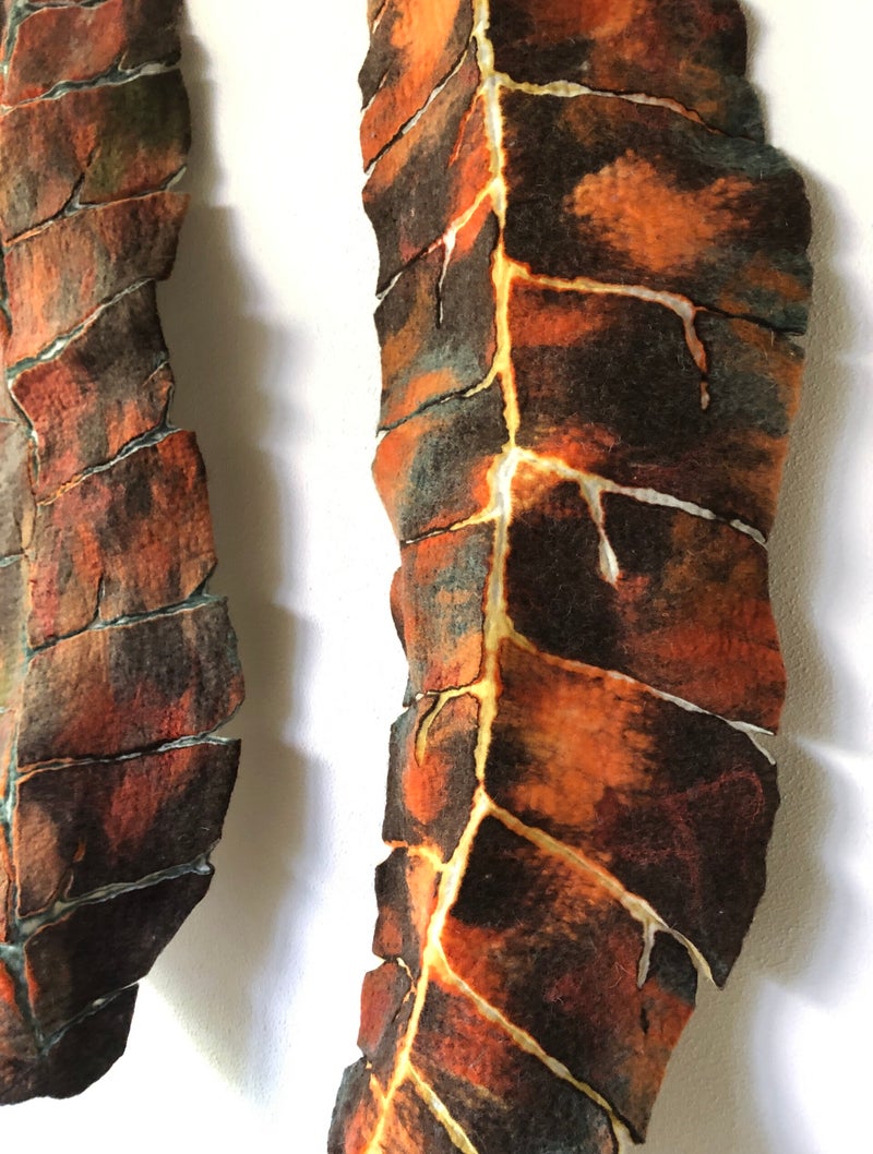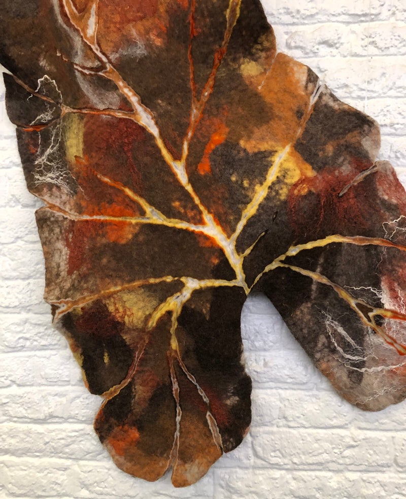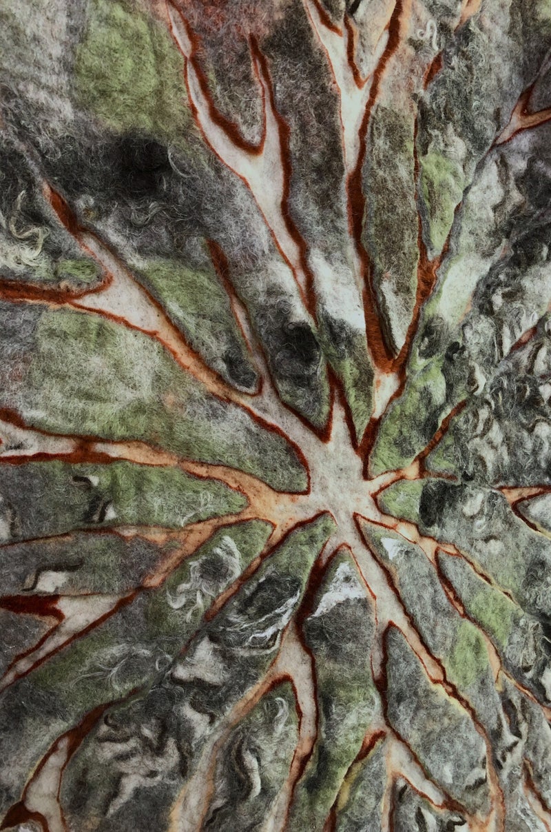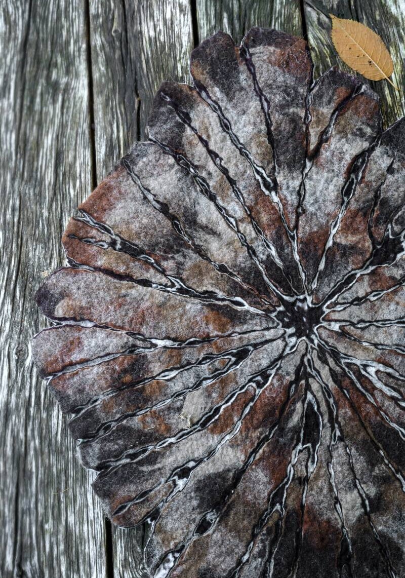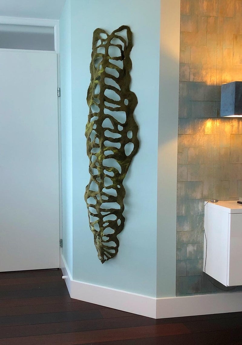 De zachte uitstraling van een vilt blijft verwonderen. In woningen die voornamelijk bestaan uit hard materiaal brengt de zachtheid van wol een warmte in het interieur. Elk kunstwerk is handgemaakt, One-of-a-kind.